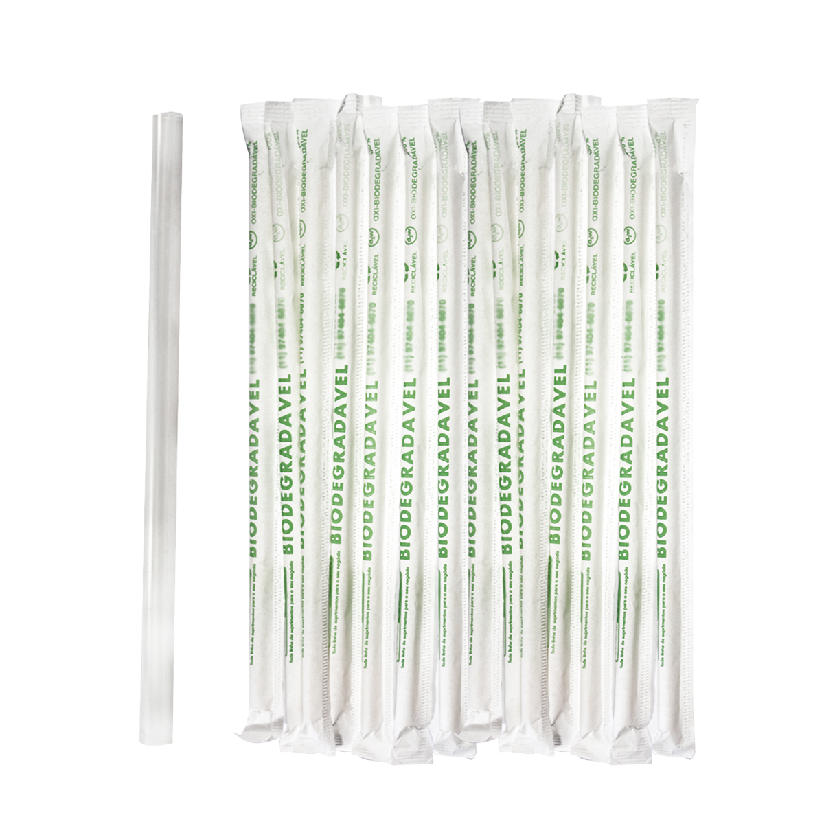 Canudo Plástico Biodegradável 8mm Milk Shake em Sachê 3000 unidades - Bio Paper