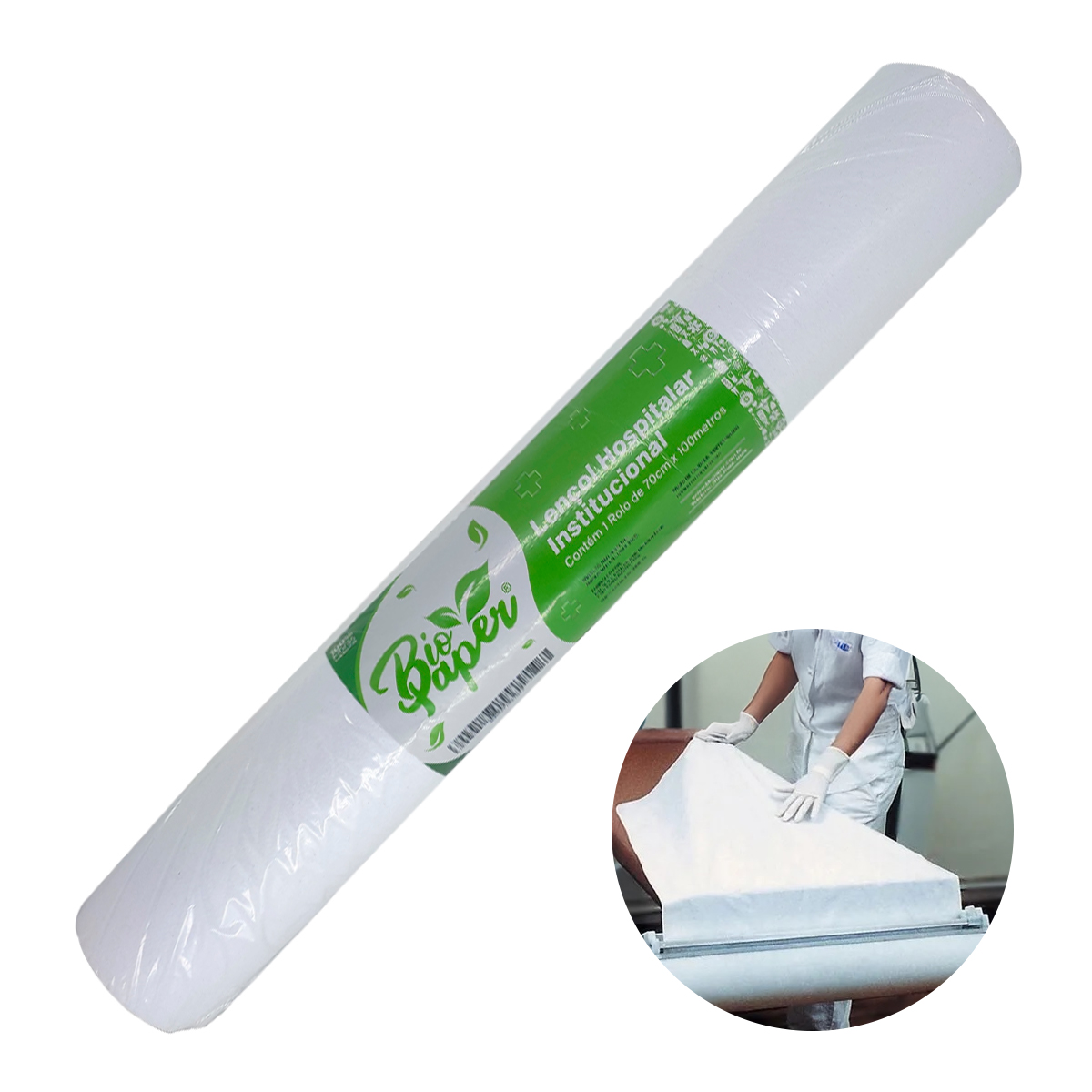 Proteção higiênica, descartável e segura para ambientes profissionais. O lençol hospitalar BioPaper® foi desenvolvido para garantir máxima higiene e praticidade na proteção de macas, camas, cadeiras e outras superfícies. Fabricado com 100% fibras celulósicas, oferece alta resistência, toque suave e absorção eficiente, contribuindo para a prevenção de contaminações cruzadas. Ideal para ambientes de saúde, estética e bem-estar que exigem agilidade, segurança e assepsia no atendimento. Dimensões do rolo: 70 cm x 100 m | Modelo: Lençol hospitalar descartável | Tipo: Rolo contínuo – uso único | Cor: Branco | Indicação: Uso individual – descartável após cada atendimento | Dimensões da embalagem: 70 cm x 12 cm. | Código: -9471